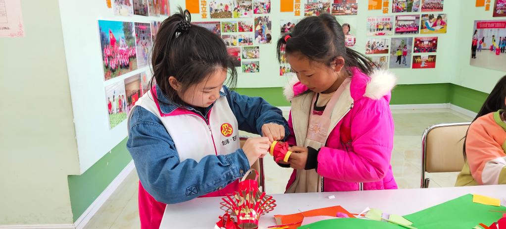 云南会泽新城妇联项目点的志愿者正教授孩子做手工艺品。(受访者供图)