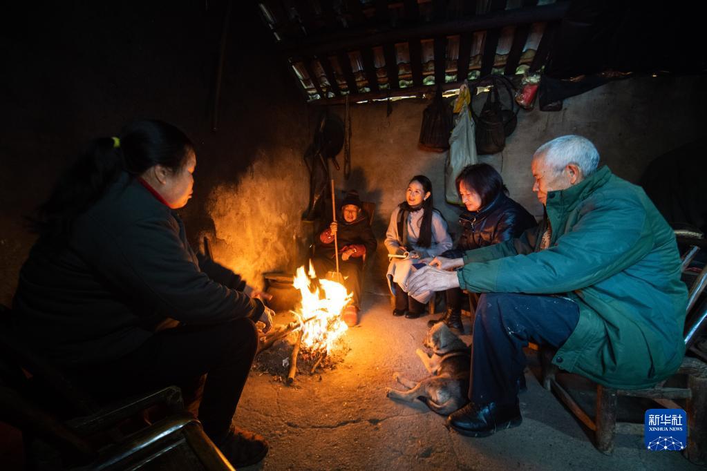 在湖南省常德市鼎城区草坪镇枫林口村,全国人大代表杜美霜(右三)入户与当地村民交流(2月16日摄)。新华社记者 陈思汗 摄