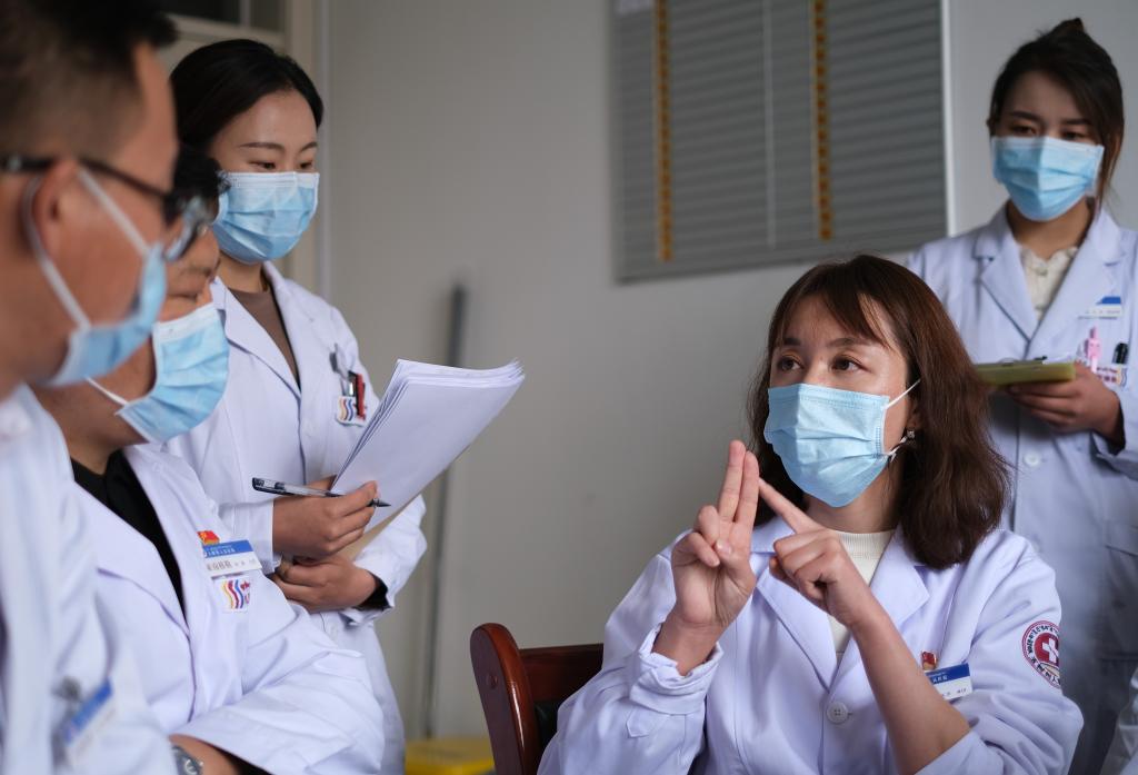 4月25日,青海省人民医院医生、青南支医队员谢延玲(右二)和青海省玉树藏族自治州人民医院医生探讨患者病情。新华社记者央秀达珍 摄